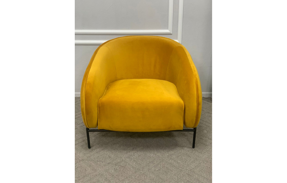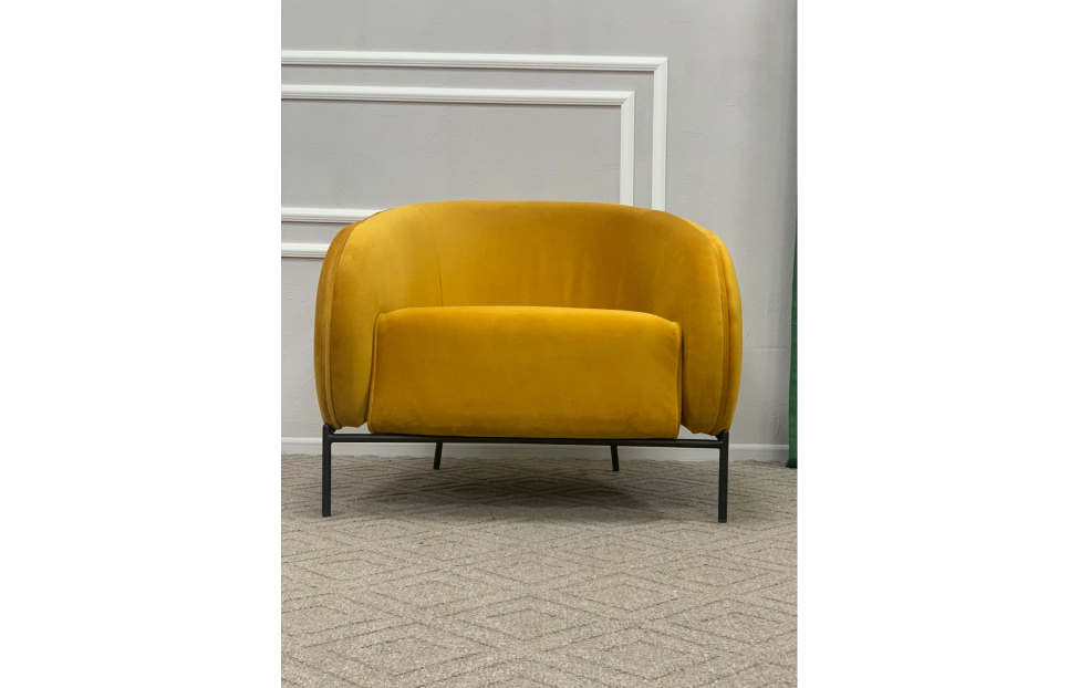 – описание: материал обивки вельвет, стиль минимализм, неоклассика, современный, цвет горчичный, размер 73x91x82 см.