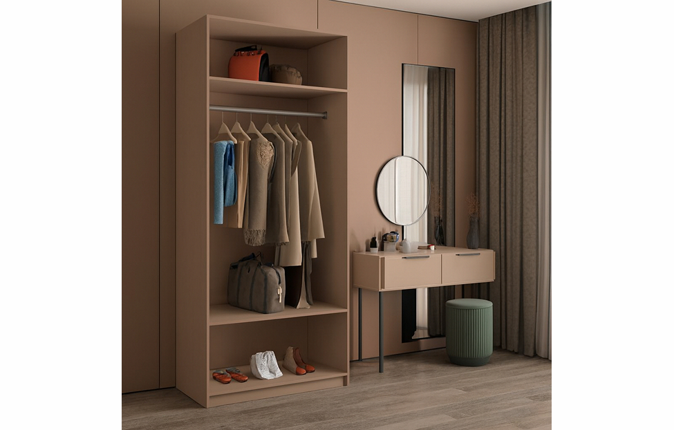 - Корпус оснащен двумя полками и штангой для одежды;