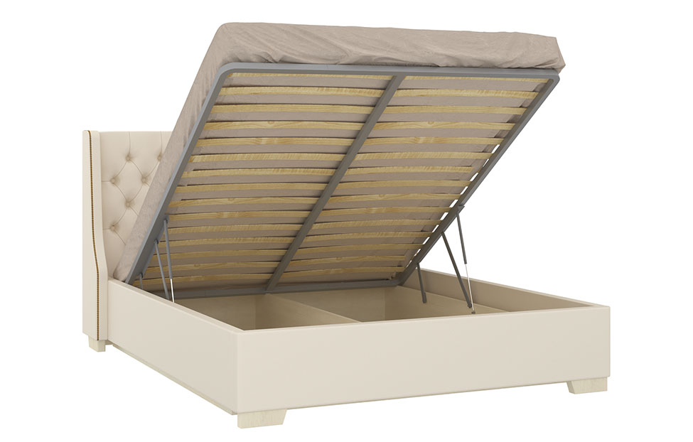 - Кровать мягкая с подъемным механизмом и ящиком для белья;