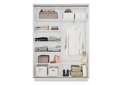 Универсальная перегородка внутри шкафа позволяет менять местами секции: можно расположить секцию со штангой или с полками с любой удобной стороны – справа или слева.