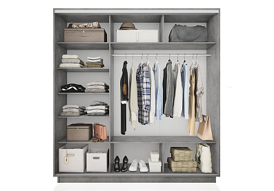 Универсальная перегородка внутри шкафа позволяет менять местами секции: можно расположить секцию со штангой или с полками с любой удобной стороны – справа или слева.