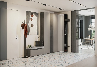Современная и функциональная мебель «Анри» отлично впишется в интерьер сканди, облегченный лофт, эко и минимализм. Цветовое решение выглядит актуально и элегантно: корпус предметов изготовлен в оттенке «швейцарский вяз», а фасады — в матовом белом цвете. Шкафы украшены вставками из эксклюзивного стекла StopSol, которое в дневное время скроет содержимое, а вечером подчеркнет наполнение при помощи изысканной подсветки. Отсутствие ручек, гладкие поверхности обеспечивают эффект расширения пространства.